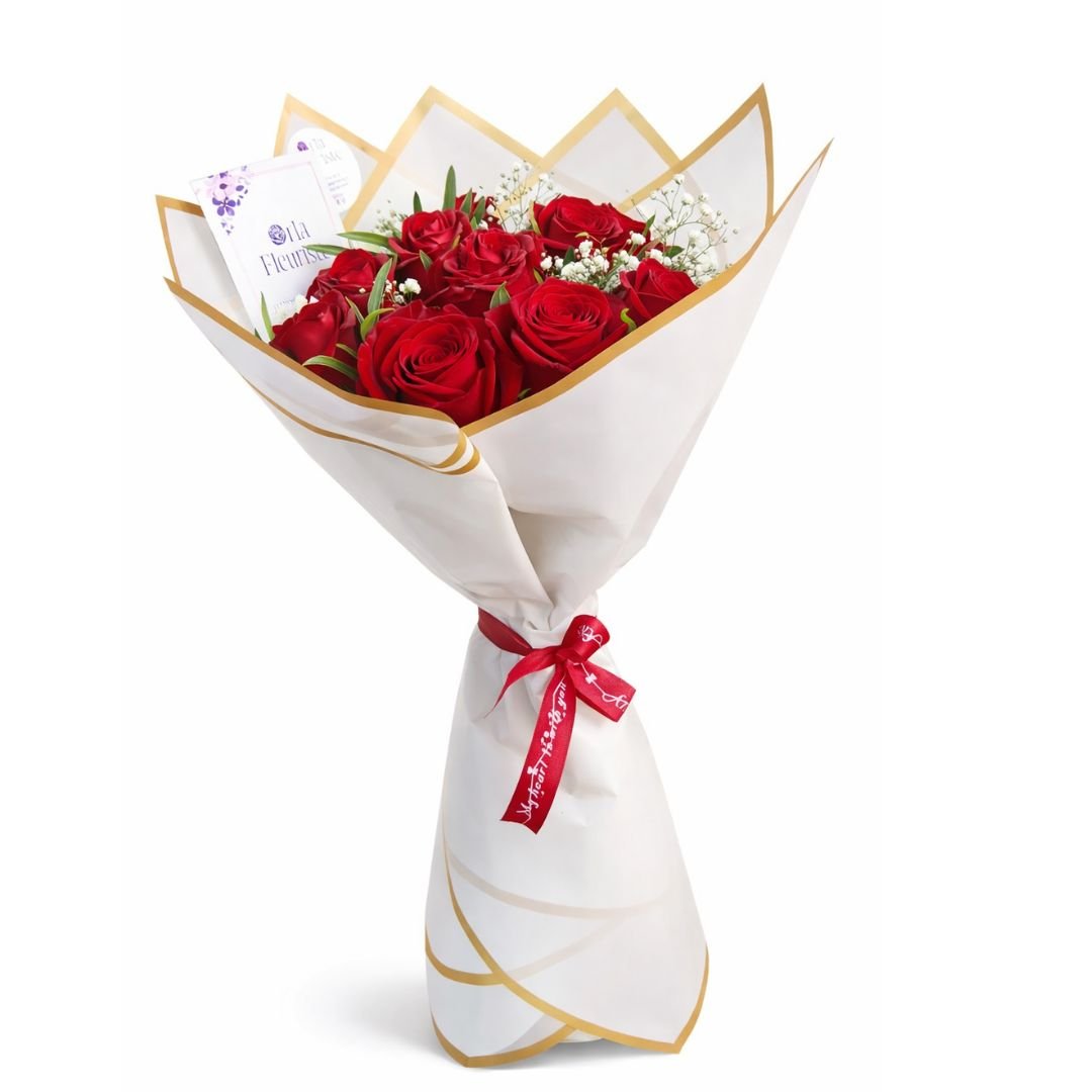 Offrez un bouquet raffiné composé de 6 roses rouges naturelles, symbole de passion et de sincérité.